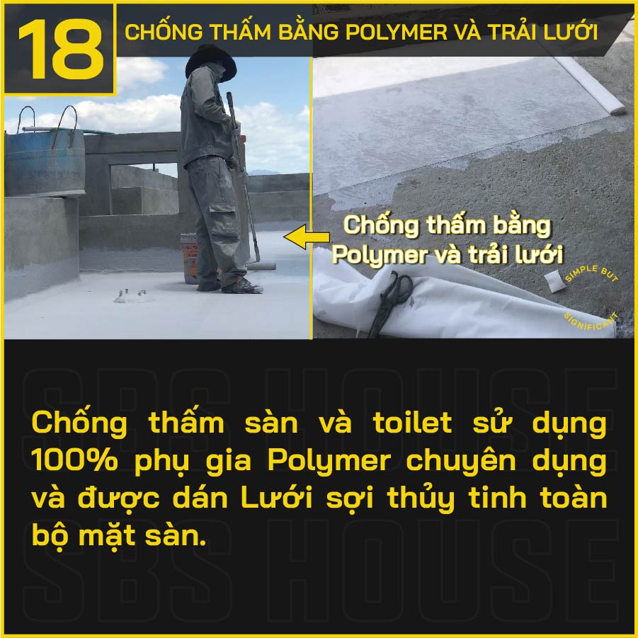 Tất cả công trình thi công do SBS HOUSE thực hiện đều đảm bảo những giải pháp mới và tối ưu nhất nhằm mang đến một sản phẩm kiên cố, bền vững. Mặc dù thi công nhà phố nhưng từ hạng mục lớn nhỏ đều được áp dụng kỹ thuật thi công nhà cao tầng Coteccons. Hơn thế nữa, các công trình được thiết kế - thi công trọn gói sẽ giống với bản vẽ thiết kế ít nhất 95%.